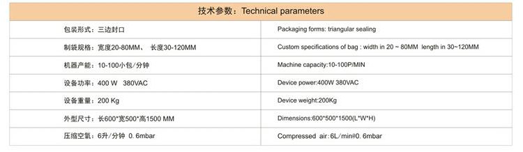 1.彩色觸摸屏和穩定可靠的雙軸高精度輸出的PLC控制,制袋、計量、充填、封合、打碼、切袋一次完成。